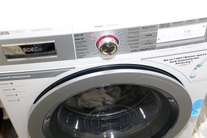 Mit einer unverbindlichen Preisempfehlung von 1.200 Euro zählt die Bosch WAYH2840 klar zum Oberklasse-Segment. Das merkt man der Maschine aber auch an allen Ecken und Enden an. Der Funktionsumfang ist gigantisch. Damit wird die Bosch fast allen Bedürfnissen gerecht. Die Steuerung per App erweist sich in der Praxis als mehr als nur eine nette Spielerei. Gerade die einfache Programmauswahl ist sehr praktisch – genau wie das i-DOS-Dosiersystem. Die Bedienung wirkt weitgehend durchdacht. Allerdings nervt, dass man bei offenstehender Einfüll-Luke permanent aus den Menüs geworfen wird. Insgesamt geht die Bedienung nach kurzer Einarbeitungszeit aber schnell in Fleisch und Blut über. Bei den Waschergebnissen kann die Bosch ebenfalls punkten. Einzig das von uns getestete Automatikprogramm überzeugt nicht komplett. Bei den restlichen von uns getesteten Programmen erledigt die Bosch ihre Arbeit jedoch fehlerfrei. Hinzu kommt ein leiser Betrieb mit nur leichten Vibrationen.