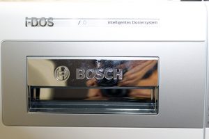 Ein echtes Highlight ist das automatische Dosiersystem i-DOS. Die Bosch WAYH2840 nimmt sich hiermit nur die wirklich benötigte Waschmittelmenge. Das funktioniert allerdings nur mit Flüssigwaschmittel und Weichspüler. Das Fach für Waschmittel fasst bis zu 1,3 Liter. Der Nutzer kann es bis zum Rand befüllen und muss sich in der Theorie danach um nichts mehr kümmern. Beleuchtete Symbole über der Waschmittelschublade geben an, ob sich noch genügend Flüssigkeit im Fach befindet oder nachgefüllt werden muss. Wir haben im Test etwa 400 Milliliter Vollwaschmittel verwendet. Selbst nach drei Testläufen mit einer Gesamtwaschzeit von drei Stunden, war der Tank noch nicht leer. Wer lieber Pulverwaschmittel verwendet, muss allerdings auf das i-DOS-System verzichten. Insgesamt hat uns die Ausstattung wirklich beeindruckt. Durch die zahlreichen Programme, Optionen und Variationsmöglichkeiten passt sich die Waschmaschine allen Verschmutzungs-Szenarien bestens an.