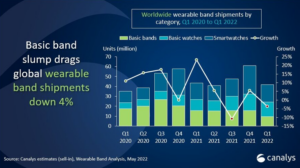 In dem Marktbericht von Canalys wird deutlich, dass das Absatzvolumen von Wearables, also Smartwatches und Fitness-Trackern, insgesamt gesunken ist. Der Rückgang entsprach in dem ersten Quartal des Jahres 2022 4 Prozent, womit das Absatzvolumen nur noch bei 41,7 Millionen Produkten lag. Diese Reduktion liegt allerdings nicht an den Smartwatches, da diese im ersten Quartal ein Wachstum von 15 Prozent verzeichnen konnten, was insgesamt 32 Millionen verkaufte Produkte bedeutet. Dahingegen hat sich das Absatzvolumen bei den Fitness-Trackern zum sechsten Mal verringert, und zwar um 37 Prozent. Zum ersten Mal wurden weniger als 10 Millionen Fitnesstracker verkauft.