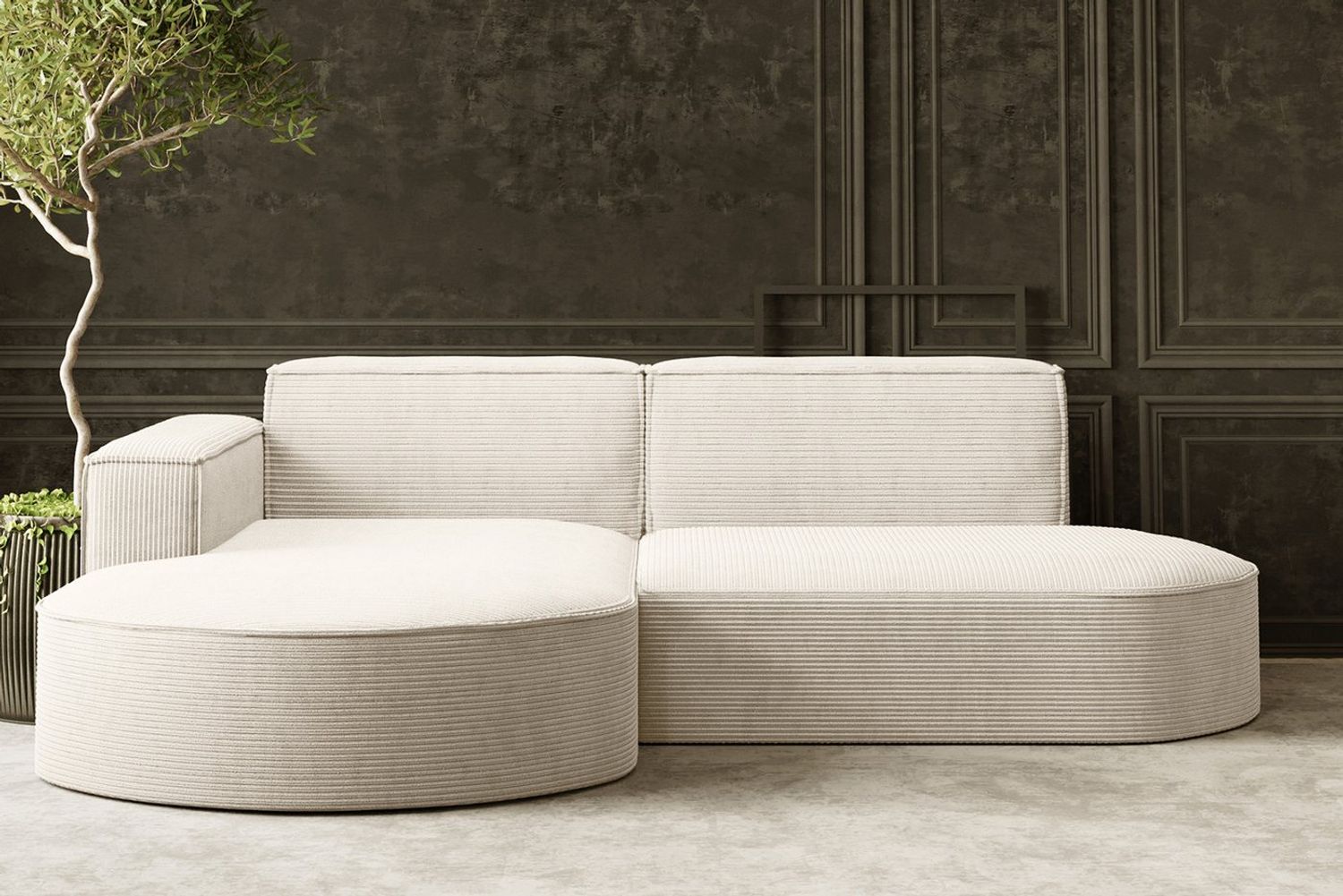 Das stilvolle Ecksofa MODENA STUDIO L bietet Ihnen und Ihrer Familie einen komfortablen Rückzugsort. Mit einem stabilen Gestell aus hochwertigen Holzwerkstoffen und einer großzügigen Polsterung sorgt es für langanhaltenden Sitzkomfort. Die widerstandsfähigen Stoffe Poso und Neve verleihen dem Sofa nicht nur eine ansprechende Optik, sondern auch eine hohe Strapazierfähigkeit. Ideal für jedes Wohnambiente. **Highlights** - Hochwertige Materialien für Langlebigkeit - Komfortable, anpassungsfähige Sitzfläche - Widerstandsfähig gegen Verformung und Verbeulen - Robuste Stoffe Poso und Neve - Zeitloses Design, passend zu jedem Einrichtungsstil **Produkteigenschaften** - Abmessungen: Breite: 236 cm, Tiefe: 165 cm, Höhe: 78 cm - Gestell aus dickem Weichholz und hochwertiger Spanplatte - Polstercord Poso mit charakteristischer Rippenstruktur - NEVE-Stoff aus flauschiger Polyesterfaser, leicht zu pflegen - Hohe Festigkeit und Flexibilität des verwendeten Schaumstoffs