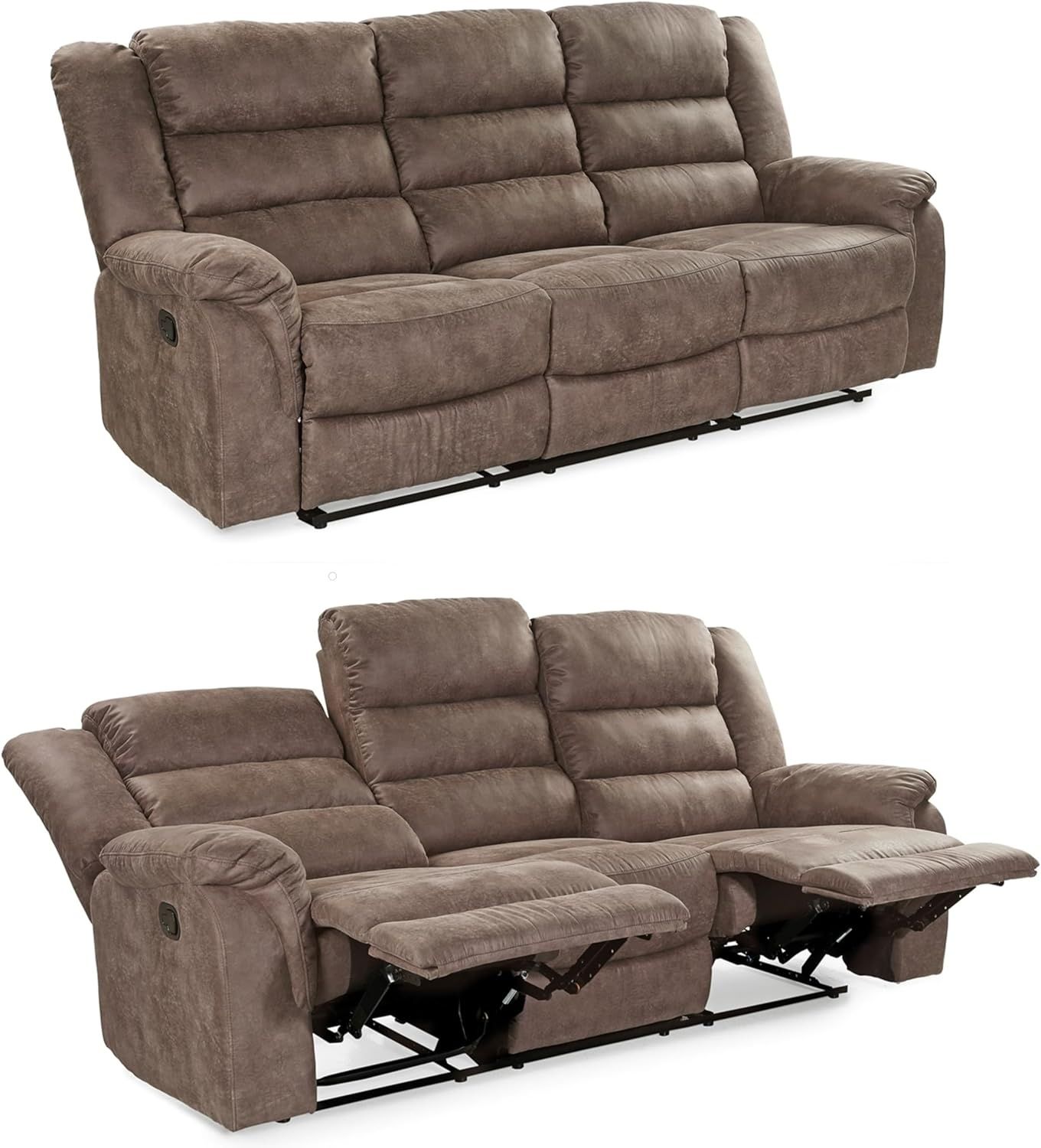 Name 3-Sitzer-Relaxsofa Couch Liegefunktion Federkernpolster Stoff Vintage Graubraun