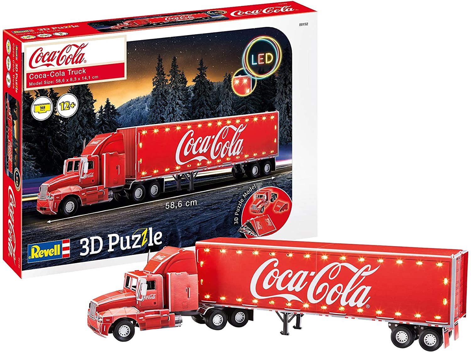 3D Puzzle - Coca-Cola Truck - LED Edition Puzzles gehören seit jeher zu den beliebtesten Hobbies bei jungen und alten Fans. Die Revell 3D Puzzle gehen dabei sogar eine Dimension weiter als das klassische Puzzle und werden ganz ohne Kleber oder Werkzeug in kürzester Zeit zum dreidimensionalen Kunstwerk. Die Puzzleteile aus Schaumstoff sind präzise gestanzt und können so einfach zusammengesteckt werden und bieten beim Familienabend Spaß für Jung und Alt. Das 3D Puzzle mit einer Länge von ca. 59 cm ist so nicht nur das Highlight jeder Weihnachtsdeko, sondern auch den Rest des Jahres ein echter Hingucker in jedem Wohnzimmer. Wenn es weihnachtet, dürfen sie nicht fehlen - die roten Coca-Cola Weihnachtstrucks. Jedes Jahr ziehen die festlich beleuchteten Giganten auf einer Städtetour Tausende in ihren Bann, bereiten Freude und lassen Herzen höherschlagen. Als 3D Puzzle mit LED-Beleuchtung ist der Truck ein Highlight jeder Weihnachtsdekoration und auch den Rest des Jahres sorgt er für ein stimmungsvolles Ambiente. Warnhinweis: Achtung! Nicht für Kinder unter 36 Monaten geeignet Achtung! Enthält verschluckbare Kleinteile. Erstickungsgefahr. Bei Sortimenten und Großpackungen gilt der angegebene Preis pro Stück. Eine Auswahl ist nur bedingt möglich!