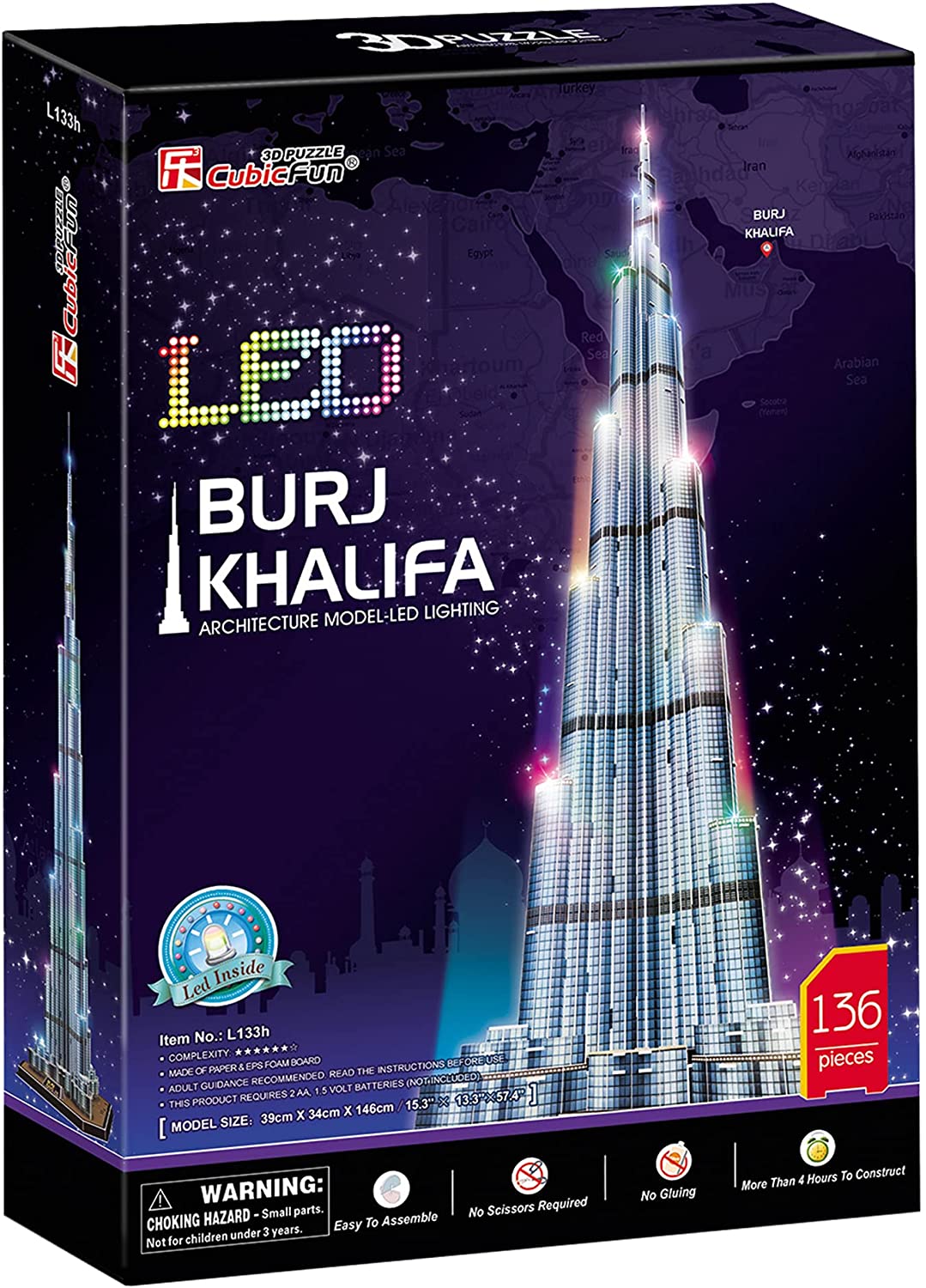 | Name | Burj Khalifa 3d Puzzle Mit Licht Led - Modellbau Beleuchtet, Modellbausatz Erwachsene Und Kinder, 146 Cm, 136 Teile, 240 Min Montage, Geschenke Ab 14 Jahre |