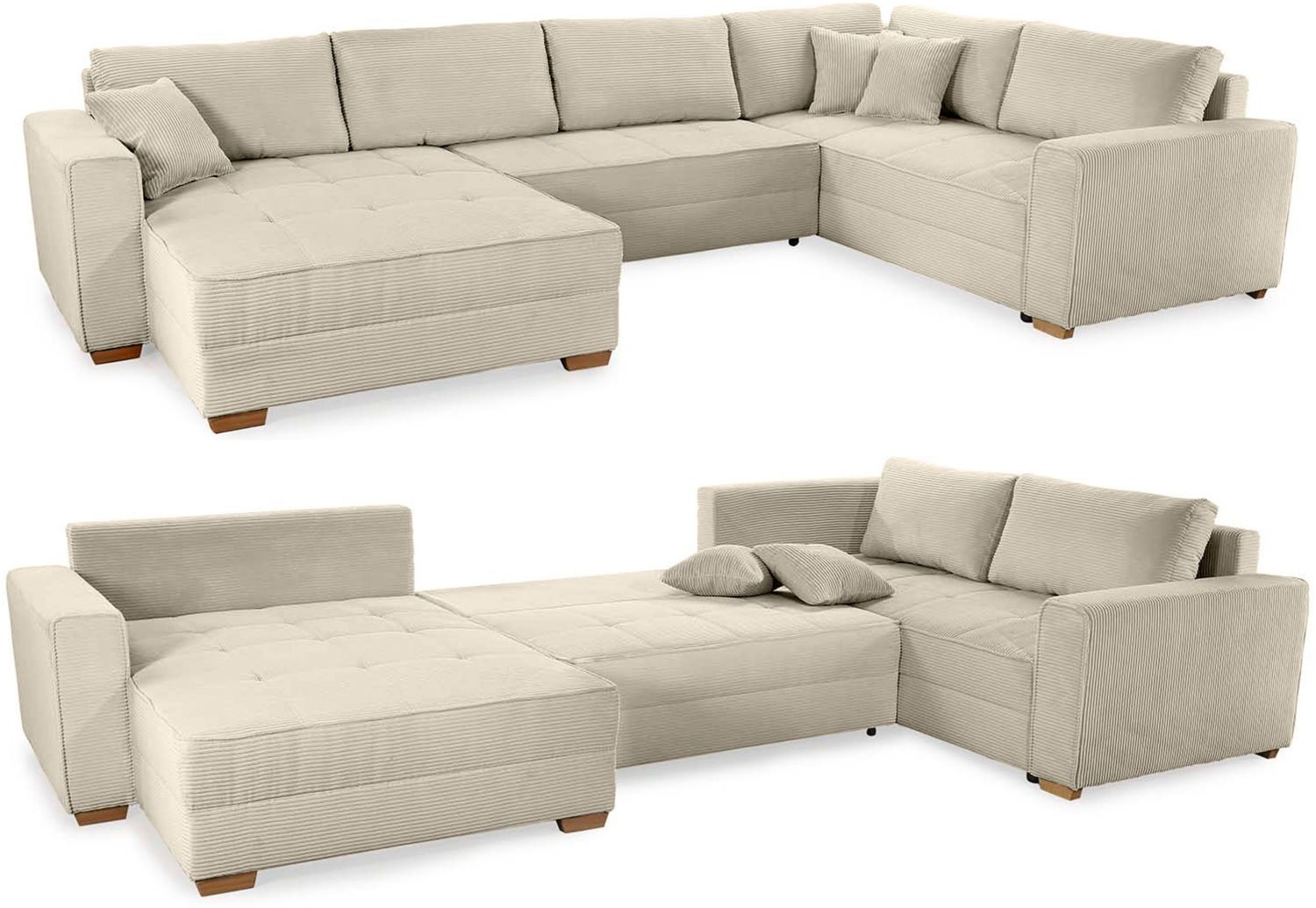 | Name | Wohnlandschaft U-Form Sofa Schlaffunktion Couch Bettkasten Cord in Grau Beige |
