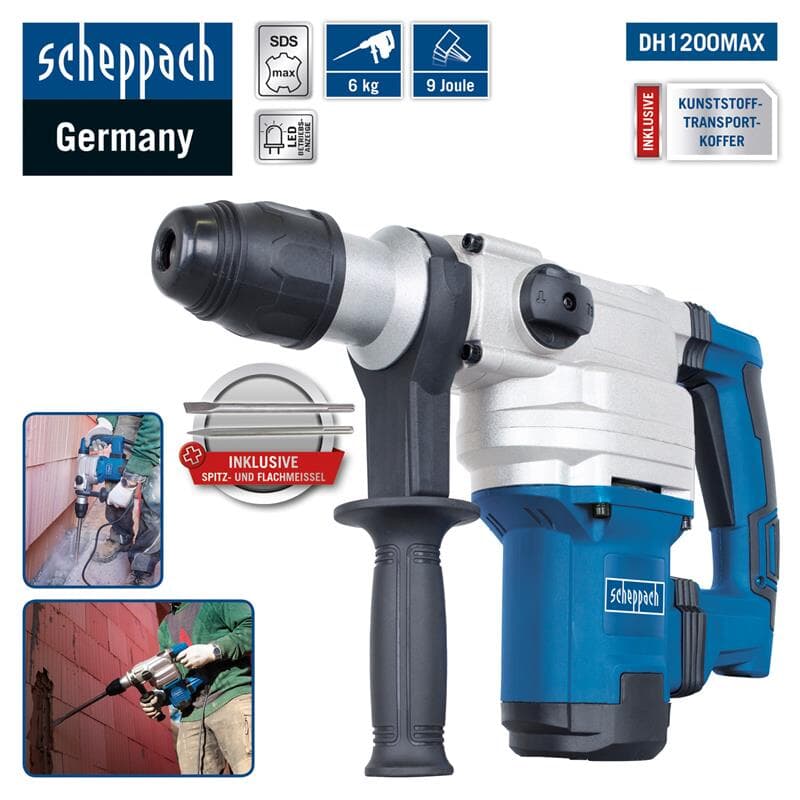 Der Scheppach Bohrhammer DH1200Max bietet eine starke Leistung und ist gut geeignet für mittelschwere bis schwere Arbeiten. Die robuste Bauweise und das Eigengewicht sorgen für eine angenehme Handhabung. Er ist zuverlässig und erfüllt die Erwartungen in Bezug auf Bohr- und Stemmleistung. Einige Nutzer bemängeln jedoch das Fehlen eines Drehstopps und eines variablen Geschwindigkeitsreglers.