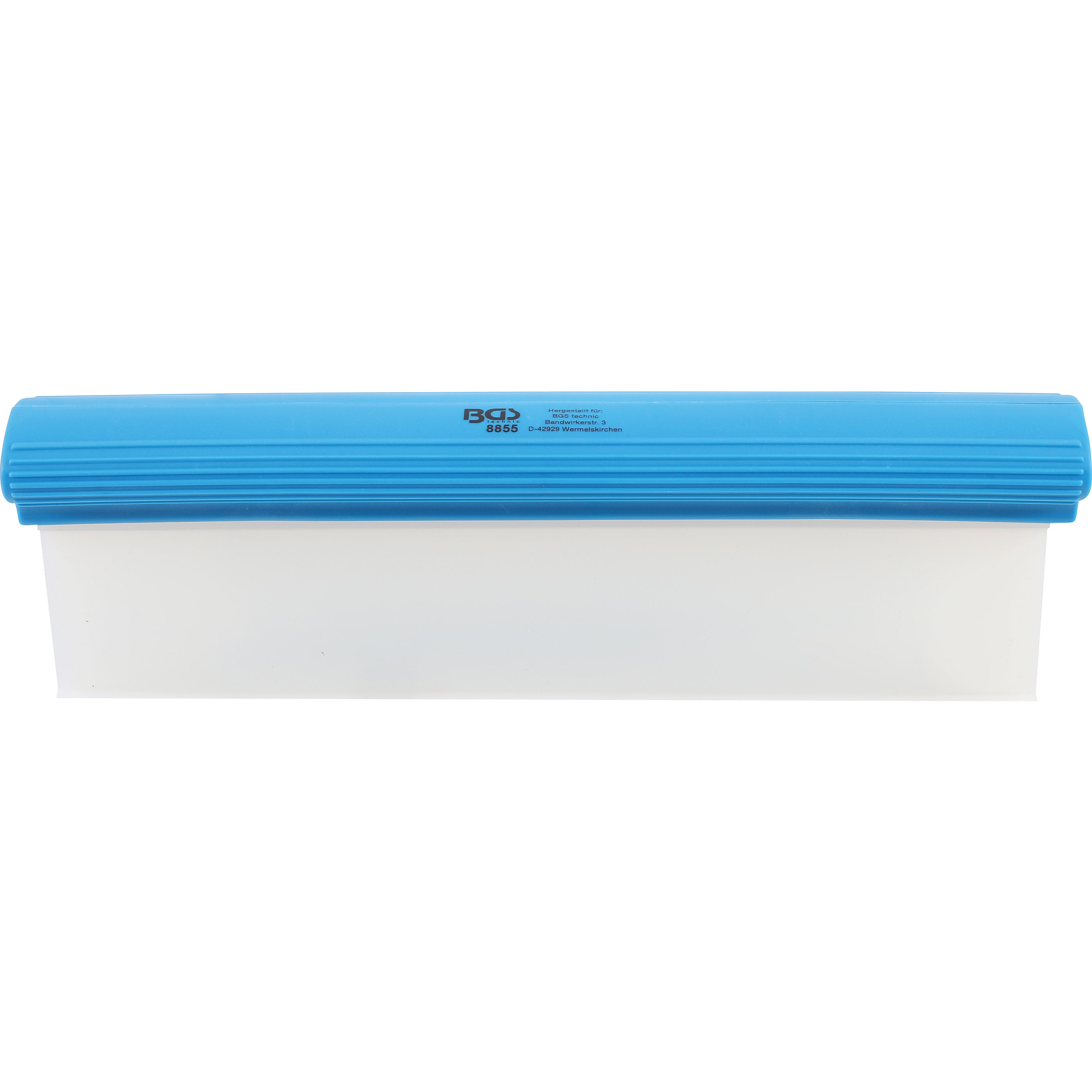 Der BGS 8855 Silikon-Wasserabzieher hat einen großen und angenehmen Griff sowie eine weiche, elastische Gummilippe mit einer zusätzlichen Lippe, die das Abziehen von Wasser erleichtert. Er eignet sich gut für Fenster und Duschen, hat jedoch einige Nachteile wie eine zu harte Silikonlippe für empfindliche Oberflächen, Quietschgeräusche während der Benutzung und Schwierigkeiten, in schwer zugängliche Stellen am Auto zu gelangen.