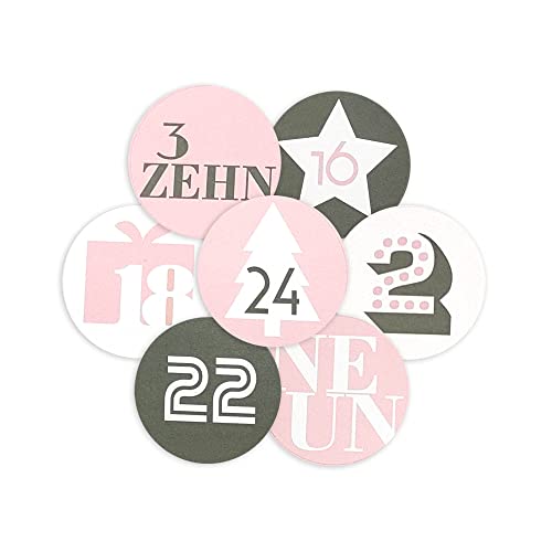 Frau WUNDERVoll 24 Adventskalenderzahlen Aufkleberfür 1 Kalender,rosa-grau, Durchmesser 4cm/ Kalender, Weihnachten, Sticker, Adventskalender, DIY, Kinder