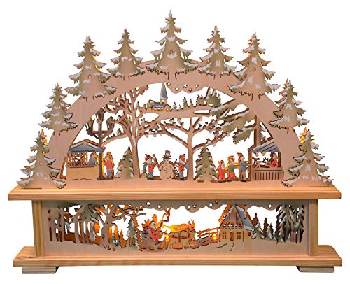yanka-style LED - Schwibbogen Lichterbogen mit Unterstellbank Weihnachtsmarkt farbig innenbeleuchtet Weihnachten Advent Geschenk Dekoration (20631)