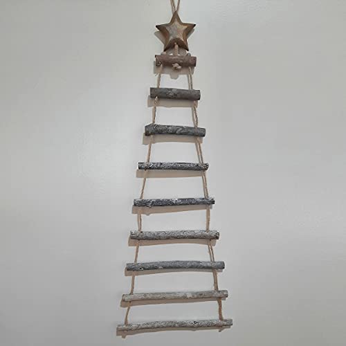 Deko Strickleiter Tannenbaum minimalistisch Holzleiter 70 cm mit Massivholz Stern Weihnachtstrend 2023