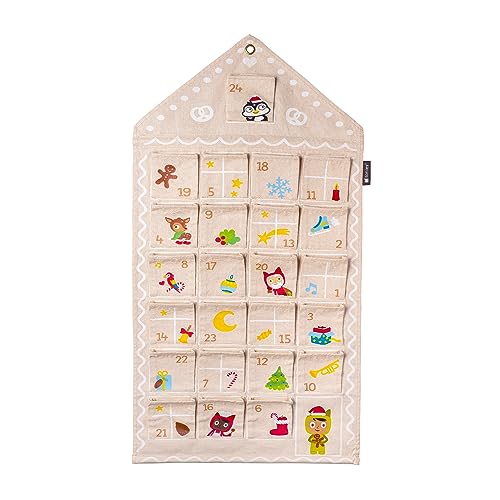 tonies Adventskalender 2023 Lebkuchenhaus – Adventskalender zum Befüllen aus 100% Baumwolle – Kinder Adventskalender Design mit 24 aufgenähten Falttaschen