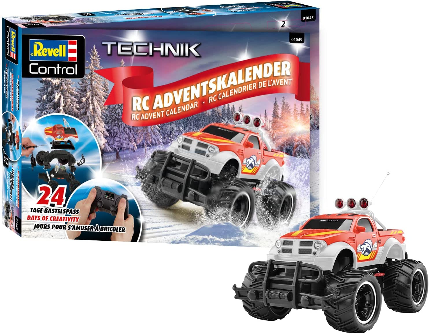 Der Revell 'Adventskalender RC-Truck' bietet Kindern ab 8 Jahren die Möglichkeit, durch den einfachen Zusammenbau und den Fahrspaß ein robustes Modell zu erschaffen. Das ferngesteuerte Fahrzeug ist flott unterwegs und sorgt für lang anhaltenden Spielspaß dank der guten Batterielaufzeit.