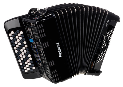 Roland FR-1XB BKDigital-Akkordeon mit 62 anschlagdynamischen Knöpfen, 128-stimmig polyphon, Schwarz