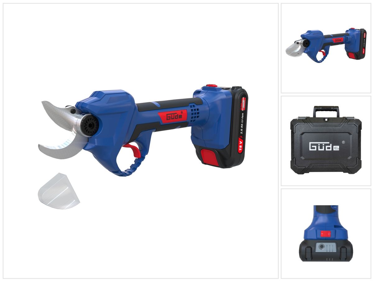 | Lieferumfang | 1x GÜDE ASC 18-201-05 K Akku Astschere 18 V, 1x Akku 2,0 Ah, 1x Ladegerät, 1x Koffer |