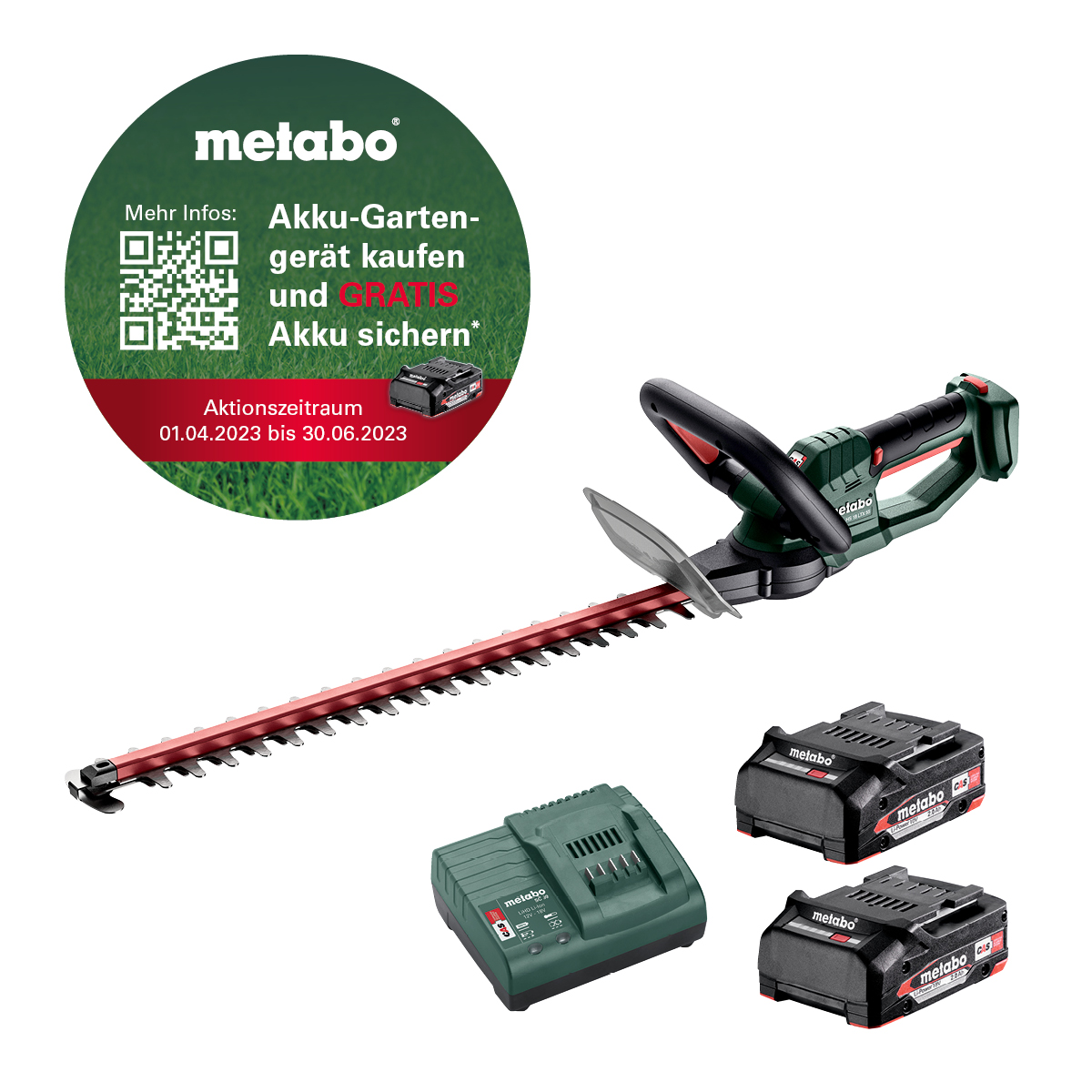 | Lieferumfang | Akku-Heckenschere, 2 Li-Power Akkupacks (18 V/2,0 Ah), Ladegerät SC 30, Messerschutzköcher |