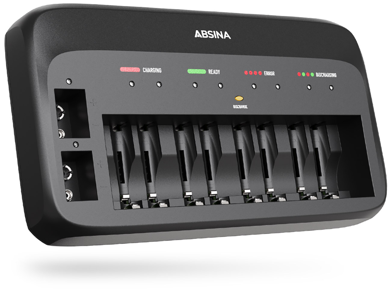 Das ABSINA X10 Ladegerät bietet die Möglichkeit, bis zu 10 Akkus gleichzeitig aufzuladen. Dabei können sowohl AA- und AAA-Batterien als auch 9-Volt-Akkus verschiedener Größen und Hersteller verwendet werden. Die farblich eindeutige Anzeige erleichtert es dem Nutzer, den Ladezustand der Batterien zu überwachen – rot zeigt an, dass geladen wird, grün signalisiert einen vollständig geladenen Akku. Darüber hinaus zeichnet sich das Ladegerät durch eine zuverlässige Leistung aus und ermöglicht schnelle Ladevorgänge.
