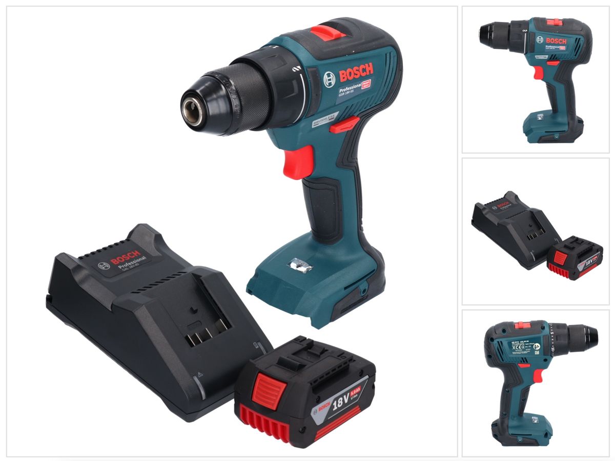 | Lieferumfang | 1x Bosch GSR 18V-55 Professional Akku Bohrschrauber - 1x Bosch GBA 18 Volt - 5,0 Ah - 5000 mAh Li-Ion Akku ( 2607337069 ) - 1x Bosch GAL 18V-40 Ladegerät ( 1600A019RJ ) Produktbeschreibung: Der Bosch GSR 18V-55 Professional , mit bürstenlosem Motor ist ein besonders robuster und leistungsstarker Akku Bohrschrauber. , mit einem großen Leistungspotenzial von 55 Nm und 1.800 min-1 bietet das Gerät einfach höchste Effizienz am Arbeitsplatz, insbesondere beim Arbeiten in Holz und Metall. Das robuste 13 mm Metallbohrfutter bietet für ein breites Spektrum an Bohr- und Schraubanwendungen die ideale Kraftübertragung. Der bürstenlose Motor des Bohrschraubers sorgt für eine lange Werkzeuglebensdauer und eine höhere Akkulaufleistung. Der GSR 18V-55 eignet sich zum Bohren in Holz ( bis 35 mm ), Stahl ( bis 13 mm ) und für Schraubdurchmesser bis 10 mm. Des weiteren verfügt der GSR 18V-55 Professional über 2 Gänge, LED-Anzeige, Metallbohrfutter, Metallgetriebe und Rechts-Linkslauf. Technische Daten: Hersteller: Bosch Herstellerbezeichnung: GSR 18V-55 Professional Akkuspannung: 18 V Max. Drehmoment weich - hart: 28 - 55 Nm Max. Leerlaufdrehzahl 1. - 2. Gang : 460 - 1.800 min-1 Bohrfutterspannbereich: 1,5 - 13 mm Drehmomentstufen: 20 + 1 Bohrdurchmesser Holz max.: 35 mm Bohrdurchmesser Stahl max.: 13 mm Schraubendurchmesser max.: 10 mm Maße (L x B x H): 189 x 77 x 205 mm Gewicht exkl. Akku: 1 kg Schwingungsemissionswert ah: 2 m-s² Unsicherheit | 1 x Akkuschrauber, mit Akku, mit Ladegerät (USB) | ohne Ladegerät, Bohrfutteraufsatz, Bithalteraufsatz, Winkelaufsatz, Exzenteraufsatz | 1 x Akkuschrauber, ohne Akku, ohne Ladegerät, ohne Koffer | 1 x Akkuschrauber, 2 x 2 Ah Akku, mit Ladegerät, mit Koffer | Ladegerät, Bit, 1 Akku | 1 x Akkuschrauber, 2 x 2 Ah Akku, mit Ladegerät, mit Koffer, mit PH Bit 2x50 mm | Akkuschrauber inklusive Akku inklusive Ladegerät | 1 x Akkuschrauber, ohne Akku, ohne Ladegerät, ohne Koffer | Einhängebügel, Doppelbit | 2,5 Ah Power X-Change Akku und Ladegerät | Schnellspannbohrfutter, ohne Ladegerät | 1 x Akkuschrauber, 2 x 1,5 Ah Akku, mit Ladegerät, mit Koffer | 1 x Akkuschrauber, 2 x 3 Ah Akku, mit Schnellladegerät, mit Makpac | Aufbewahrungsbox, Bohrer, Magnetischer Bithalter, USB-C Kabel, Winkelaufsatz, Exzenteraufsatz | 1 x Akkuschrauber, 2 x 2 Ah Akku | 1 x Akkuschrauber, ohne Akku, ohne Ladegerät, ohne Koffer | 1 x Akkuschrauber, 1 x 4 Ah Akku, mit Ladegerät, mit Softbag, mit 39-tlg. Zubehör-Set | Zusatzhandgriff | 2x 5.0Ah Akku, Ladegerät und L-BOXX | 1 x Akkuschrauber, 1 x 1,5 Ah Akku, mit Ladegerät, ohne Koffer |