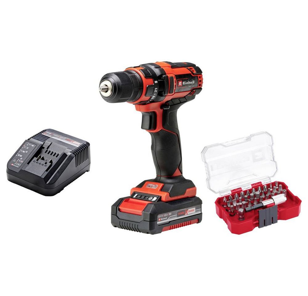 | Lieferumfang | - | 1 x Akkuschrauber, mit Akku, mit Ladegerät (USB) | 1 x Akkuschrauber, ohne Akku, ohne Ladegerät, ohne Koffer | ohne Ladegerät, Bohrfutteraufsatz, Bithalteraufsatz, Winkelaufsatz, Exzenteraufsatz | 1 x Akkuschrauber, 2 x 2 Ah Akku, mit Ladegerät, mit Koffer | 1 x Akkuschrauber, 2 x 2 Ah Akku, mit Ladegerät, mit Koffer, mit PH Bit 2x50 mm | Ladegerät, Bit, 1 Akku | Akkuschrauber inklusive Akku inklusive Ladegerät | 1 x Akkuschrauber, ohne Akku, ohne Ladegerät, ohne Koffer | Einhängebügel, Doppelbit | 2,5 Ah Power X-Change Akku und Ladegerät | 1 x Akkuschrauber, 2 x 1,5 Ah Akku, mit Ladegerät, mit Koffer | 1 x Akkuschrauber, 2 x 2 Ah Akku | Aufbewahrungsbox, Bohrer, Magnetischer Bithalter, USB-C Kabel, Winkelaufsatz, Exzenteraufsatz | Schnellspannbohrfutter, ohne Ladegerät | 1 x Akkuschrauber, 2 x 3 Ah Akku, mit Schnellladegerät, mit Makpac | Bit-Set, Ladegerät | 1 x Akkuschrauber, 1 x 4 Ah Akku, mit Ladegerät, mit Softbag, mit 39-tlg. Zubehör-Set | Zusatzhandgriff | 1 x Akkuschrauber, ohne Akku, ohne Ladegerät, ohne Koffer | 1 x Akkuschrauber, 1 x 1,3 Ah Akku, mit Ladegerät, mit Koffer |