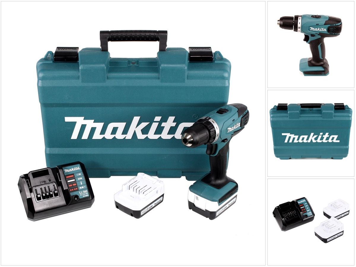 | Lieferumfang | 1 x Akkuschrauber, 2 x 1,5 Ah Akku, mit Ladegerät, mit Koffer | 1 x Akkuschrauber, mit Akku, mit Ladegerät (USB) | 1 x Akkuschrauber, ohne Akku, ohne Ladegerät, ohne Koffer | 1 x Akkuschrauber, 2 x 2 Ah Akku, mit Ladegerät, mit Koffer | ohne Ladegerät, Bohrfutteraufsatz, Bithalteraufsatz, Winkelaufsatz, Exzenteraufsatz | 1 x Akkuschrauber, 2 x 2 Ah Akku, mit Ladegerät, mit Koffer, mit PH Bit 2x50 mm | Ladegerät, Bit, 1 Akku | Akkuschrauber inklusive Akku inklusive Ladegerät | 1 x Akkuschrauber, ohne Akku, ohne Ladegerät, ohne Koffer | Einhängebügel, Doppelbit | 2,5 Ah Power X-Change Akku und Ladegerät | 1 x Akkuschrauber, 2 x 1,5 Ah Akku, mit Ladegerät, mit Koffer | 1 x Akkuschrauber, 2 x 2 Ah Akku | Aufbewahrungsbox, Bohrer, Magnetischer Bithalter, USB-C Kabel, Winkelaufsatz, Exzenteraufsatz | Schnellspannbohrfutter, ohne Ladegerät | 1 x Akkuschrauber, 2 x 3 Ah Akku, mit Schnellladegerät, mit Makpac | Bit-Set, Ladegerät | 1 x Akkuschrauber, 1 x 4 Ah Akku, mit Ladegerät, mit Softbag, mit 39-tlg. Zubehör-Set | Zusatzhandgriff | 1 x Akkuschrauber, ohne Akku, ohne Ladegerät, ohne Koffer | 1 x Akkuschrauber, 1 x 1,5 Ah Akku, mit Ladegerät, ohne Koffer |