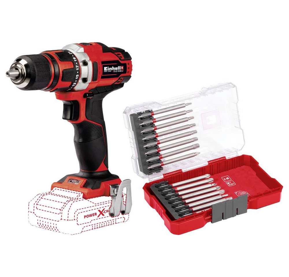 | Lieferumfang | Bit-Set, Gürtelclip | 1 x Akkuschrauber, mit Akku, mit Ladegerät (USB) | 1 x Akkuschrauber, ohne Akku, ohne Ladegerät, ohne Koffer | 1 x Akkuschrauber, 2 x 2 Ah Akku, mit Ladegerät, mit Koffer | ohne Ladegerät, Bohrfutteraufsatz, Bithalteraufsatz, Winkelaufsatz, Exzenteraufsatz | 1 x Akkuschrauber, 2 x 2 Ah Akku, mit Ladegerät, mit Koffer, mit PH Bit 2x50 mm | Ladegerät, Bit, 1 Akku | Akkuschrauber inklusive Akku inklusive Ladegerät | 1 x Akkuschrauber, ohne Akku, ohne Ladegerät, ohne Koffer | Einhängebügel, Doppelbit | 2,5 Ah Power X-Change Akku und Ladegerät | 1 x Akkuschrauber, 2 x 1,5 Ah Akku, mit Ladegerät, mit Koffer | 1 x Akkuschrauber, 2 x 2 Ah Akku | Aufbewahrungsbox, Bohrer, Magnetischer Bithalter, USB-C Kabel, Winkelaufsatz, Exzenteraufsatz | Schnellspannbohrfutter, ohne Ladegerät | 1 x Akkuschrauber, 2 x 3 Ah Akku, mit Schnellladegerät, mit Makpac | Bit-Set, Ladegerät | 1 x Akkuschrauber, 1 x 4 Ah Akku, mit Ladegerät, mit Softbag, mit 39-tlg. Zubehör-Set | Zusatzhandgriff | 1 x Akkuschrauber, ohne Akku, ohne Ladegerät, ohne Koffer | 1 x Akkuschrauber, 1 x 1,5 Ah Akku, mit Ladegerät, ohne Koffer |