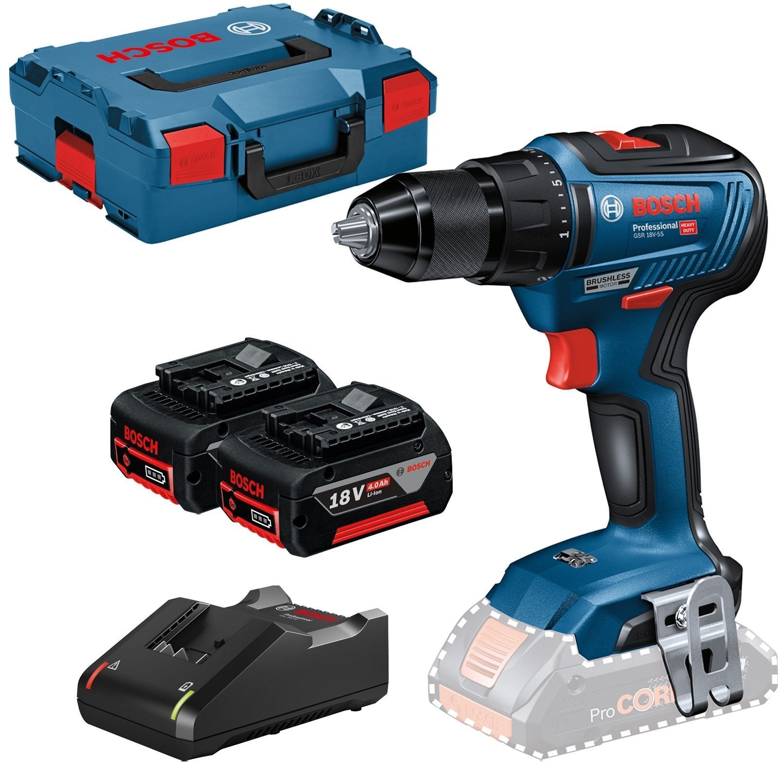 | Lieferumfang | 1 x Akkuschrauber, 2 x 4 Ah Akku, mit Ladegerät, mit L-Boxx |
