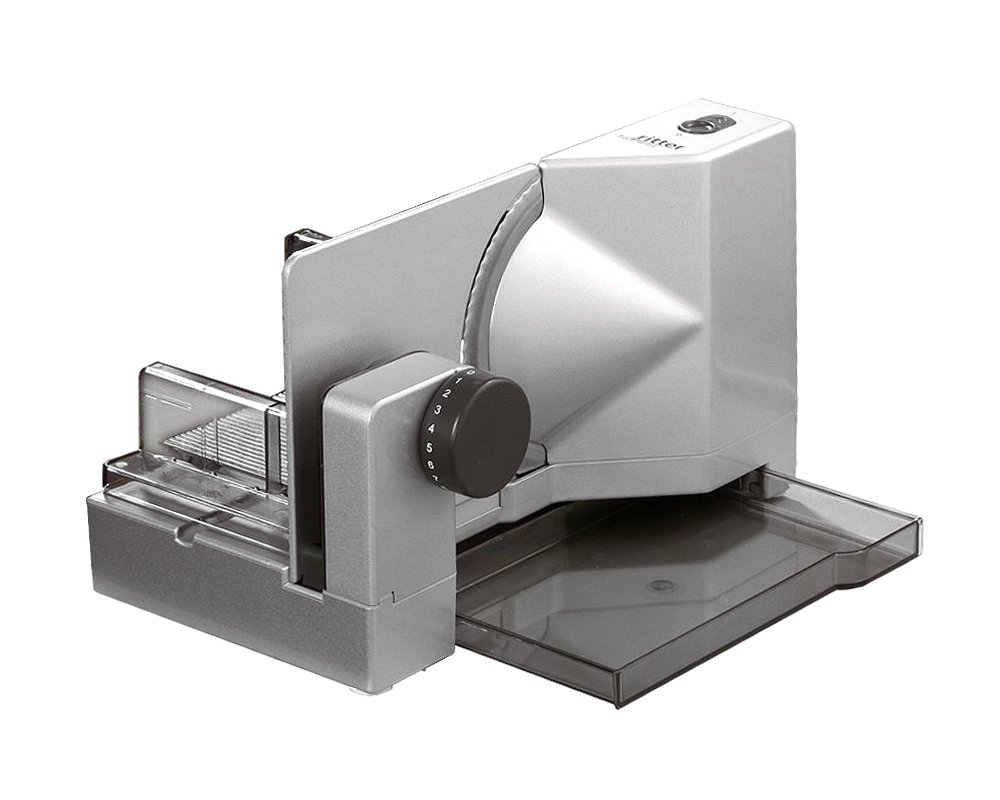 | Sonstiges | Schneidgut links geführt | Supermobil durch Faltfunktion, Höhe eingeklappt nur 8 cm. | klappbar, Vollmetallausführung, Wellenschliffmesser aus rostfreiem Edelstahl, 2-Finger-Einschaltsystem, Moment- oder Dauerbetrieb, 65 Watt Eco-Motor | - | Kompakte Gerätemaße von 20,2 x 33,1 x 10,1 cm. | Energiesparmotor mit 170 Watt, rutschfester Standfuß, kompakte Bauweise, Schnittstärken einstellbar von 0 bis 2 cm, inklusive Schinkenmesser. | Selbstschärfende Klingen | BPA frei, platzsparend klappbar, mit Sicherheitsschalter, Eco 100 Watt | Schlittenführung aus Edelstahl, Sauggummifüße | Made in Germany | Supermobil durch Faltfunktion, Höhe eingeklappt nur 8 cm. | ECO-Motor, made in Germany | - | kippbar um 30° | Beleuchtete Einstellskala, beleuchteter Schneidebereich, zusätzliche Schnittstärkenfeineinstellung im Bereich 0 - 2 mm | Rostfrei, spülmaschinengeeignet, inkl. Aufbewahrungsbox | Sicherheits-Moment- und Dauerschalter. | Made in Germany | Made in Germany | Der Allesschneider ist in einem edlen Eisenglimmergrau gehalten und verfügt über eine hygienische Glasbodenplatte. | Motorgehäuse aus Alu-Druckguss, geneigter Auflagetisch mit Edelstahleinlage, Restehalter mit Fingerschutz, Saugfüße für sicheren Stand |