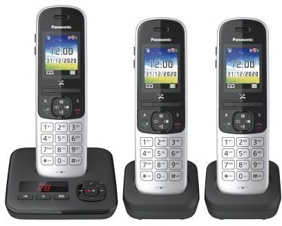 Das Panasonic Schnurlostelefon KX-TGH723GS mit Anrufbeantworter und 2 zusätzlichen Mobilteilen bietet eine hervorragende Sprachqualität, intuitive Bedienung und viele Funktionen, um unerwünschte Anrufer zu blockieren. Die Telefone sind einfach in der Handhabung und haben eine lange Akkulaufzeit. Sie werden mit AAA-Akkus betrieben.