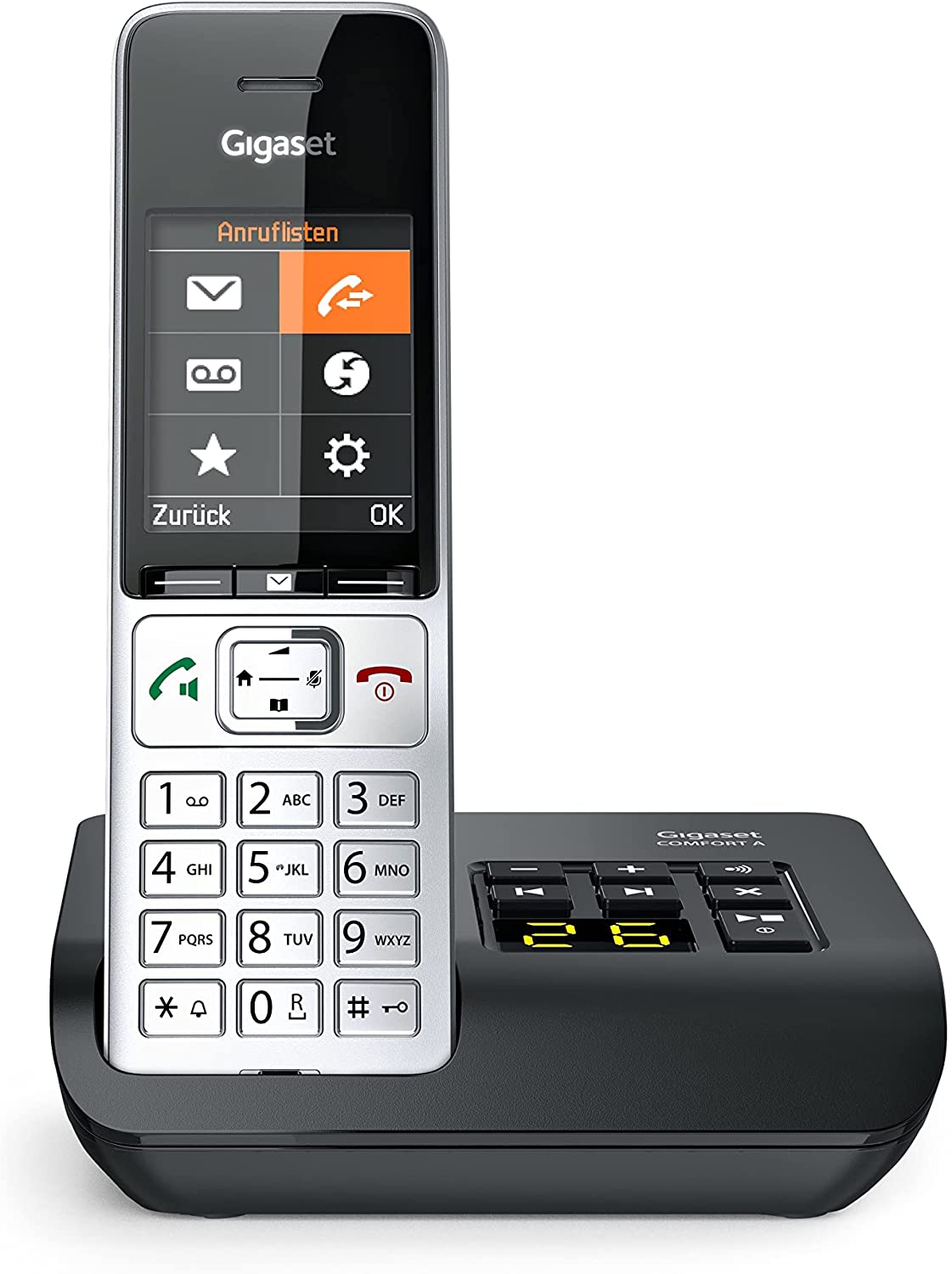 | Funktionen | Anrufbeantworter, Freisprechfunktion, Fernabfrage, HD Telefonie, Lautstärkeregelung, ECO-Modus, Telefonbuch, Babyfon-Funktion, Kalender, Wecker, Uhr, Alarmfunktion, Reichweiten-Warnton, SMS-Funktion, Strahlungsarm |