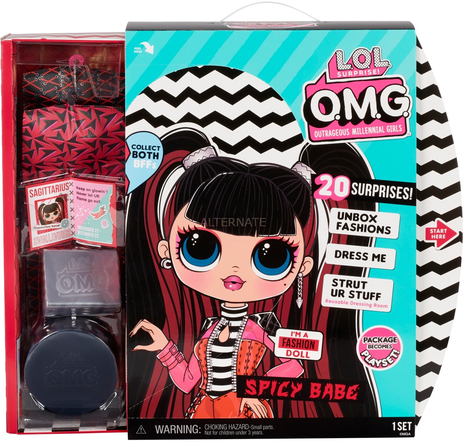 Die L. O. L. Surprise! Familie bekommt Zuwachs: die stylische und detailgetreue O. M. G. Puppe. Die Modepuppe bezaubert durch einen einzigartigen Look und Kleidungsstücken, die aus Textilmaterial gefertigt sind und perfekt zum frechen Style von L. O. L. Surprise passen. Mit ca. 24 cm Größe, 9 Bewegungspunkten und Haaren zum Frisieren lädt die O. M. G. Fashionista dazu ein jeden Tag in die L. O. L. Welt einzutauchen. Mit 20 Überraschungen, passende Outfits und tolle Accessoires wie Schuhe und Bürste machen das Set zum absoluten Muss für alle L. O. L. Surprise Fans. Die Verpackung wird zur Umkleidekabine. Warnhinweis: Achtung! Nicht für Kinder unter 36 Monaten geeignet aufgrund verschluckbarer Kleinteile. Warnhinweis: Achtung! Nicht für Kinder unter 36 Monaten geeignet. Achtung! Enthält verschluckbare Kleinteile. Erstickungsgefahr.