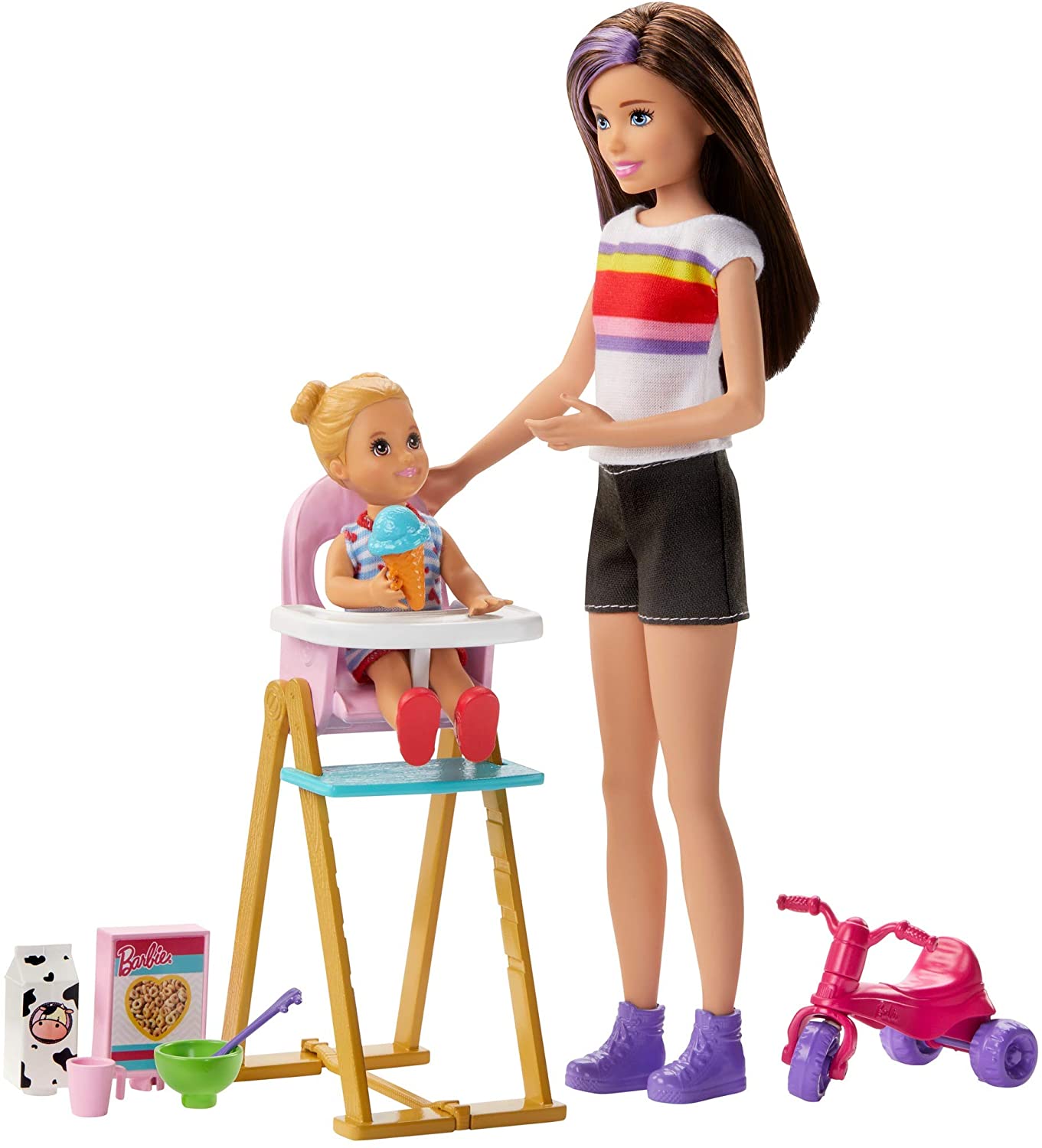 | Name | Barbie GHV87 - Skipper Babysitters Inc. Füttern Spielset mit Skipper-Puppe, Kleinkind und Zubehör, Spielzeug ab 3 Jahren |