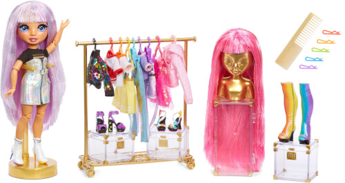| Beschreibung | Die Rainbow High Collector Puppe liebt die Mode, diese zu designen, zu tragen und zu präsentieren. Sie lebt den Regenbogen-Look und trägt die Farben in ihrem Haar. Sie kommt mit 2 Outfits. Eins davon ist ganz besonders und hochwertig: Ein Designerkleid, von ihr selbst kreiert. Dank eines Kleidersacks ist das Kleid vor Staub geschützt. Zum kreieren neuer Looks braucht es Zubehör: Eine Mini-Nähmaschine, eine Kleiderpuppe und viele Zubehörteile wie Klarsichtboxen im coolen Rainbow High Design. |