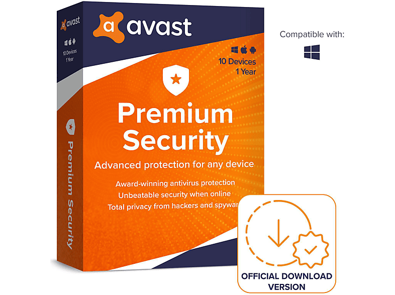 Avast Premium SecurityAntivirus-Software für 10 Geräte, 1 Jahr, PC/MAC, umfassender Schutz gegen Malware und Phishing, Passwort-Safe, erweiterte Firewall