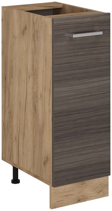Der Vicco Apothekerschrank in Edelgrau ist der ideale Unterschrank für Ihre Küche. Mit einem Maß von 30 x 81,6 x 47,6 cm (BxHxT) bietet er viel Stauraum und kann modular umgestellt werden. Die höhenverstellbaren Füße ermöglichen eine individuelle Anpassung. Hergestellt aus 16 mm Spanplatte mit einer Melaminharzbeschichtung, vereint dieser Schrank Funktionalität und Stil. **Highlights** - Modular umstellbar für flexible Nutzung - Höhenverstellbare Füße für individuelle Anpassung - Melaminharzbeschichtung für langlebige Oberfläche - Viel Stauraum für Küchenutensilien - Stilvolles Design in Edelgrau **Produkteigenschaften** - Farbe Korpus: Goldkraft Eiche - Farbe Front: Edelgrau - Maße: 30 x 81,6 x 47,6 cm (BxHxT) - Material: Spanplatte, 16 mm - Artikelgewicht: 17,92 kg - Artikelgewicht inkl. Verpackung: 19,9 kg **Lieferumfang** - Apothekerunterschrank als Bausatz - Montageanleitung - Montagematerial - Dekoration nicht im Lieferumfang enthalten