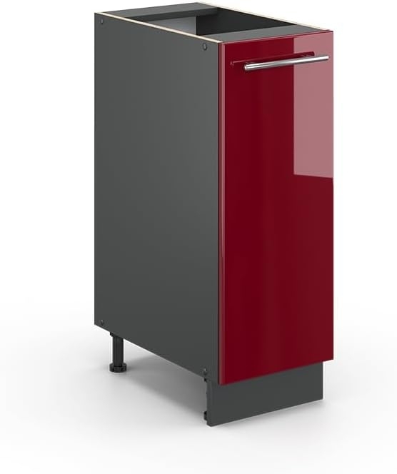 Der Vicco Apothekerunterschrank 30 cm Hochglanz Küchenschrank Apothekerschrank Küchenzeile Fame-Line (Bordeaux Hochglanz) ist ein hochwertig verarbeiteter Schrank, der in jeder Küche für einen eleganten Look sorgt. Mit Softclose Scharnieren und Metallauszügen bieten die Schubladen und Türen des Schranks einen bequemen und langlebigen Gebrauch. Die Maße des Schranks sind auf die heutigen Standardgeräte abgestimmt und bieten ausreichend Stauraum. Der Lieferumfang umfasst den Küchenschrank, eine Montageanleitung und das benötigte Montagematerial. Optional kann eine Arbeitsplatte dazu bestellt werden. Der Schrank kann beliebig mit anderen Modulen der Serie "Fame-Line" erweitert werden. **Highlights** - Hochwertige Materialien und Verarbeitung - Softclose Scharniere für bequemes Handling - Metallauszüge für lange Freude - Elegantes Design mit hochglanz lackierter Oberfläche - Beliebig erweiterbar mit anderen Modulen der Serie "Fame-Line" **Produkteigenschaften** - Maße: 30 cm Breite, 207 cm Höhe, 51,6 cm Tiefe - Bordeaux Hochglanz Farbe - Softclose Scharniere für bequemes Handling - Metallauszüge für lange Freude - Erweiterbar mit anderen Modulen der Serie "Fame-Line" **Lieferumfang** - Küchenschrank - Montageanleitung - Montagematerial