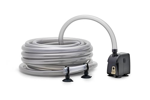 • Es besteht aus einer leistungsstarken Aquarienpumpe, einem 10 Meter langen Schlauch und Saugnäpfen zur Befestigung