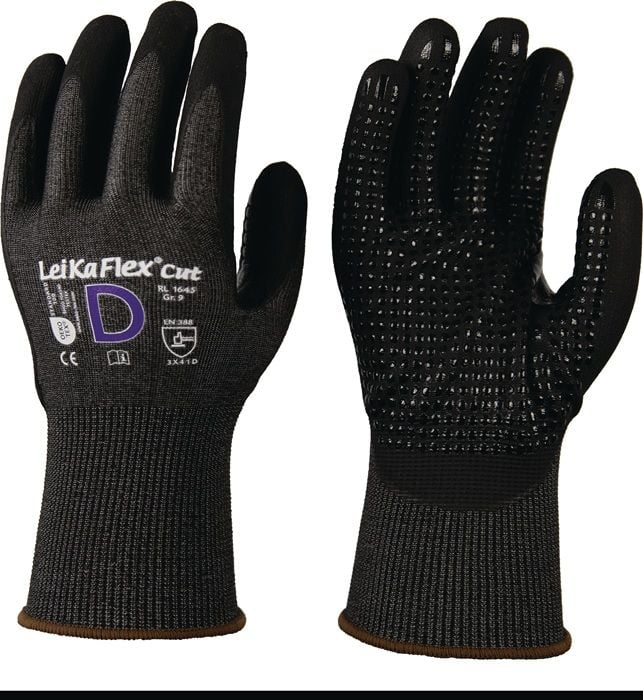 Richard Leipold GmbH Schnittschutzhandschuhe LeiKaFlex® CUT RL 1645 Gr.8 grau/schwarzflexibler Schnittschutz Level D, Nitril-Schaumbeschichtung, EN 388 PSA II