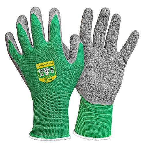 Die GRÜNTEK Gartenhandschuhe bieten durch ihre Latex-Beschichtung eine gute Griffigkeit und sind robust sowie langlebig. Sie sind für verschiedene Gartenarbeiten geeignet und bieten ein gutes Preis-Leistungs-Verhältnis. Allerdings fallen sie etwas größer aus und können anfangs unangenehm riechen. Die Textilaußenseite ist anfällig für Beschädigungen bei dornigen Pflanzen.
