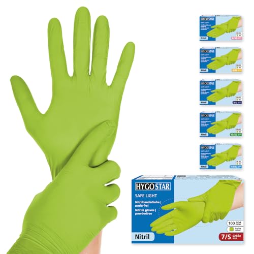 FRANZ MENSCH Hygostar Nitrilhandschuhe Safe Light | puderfreigrün, 7/S, 24cm, 100 Stück, Einweghandschuhe