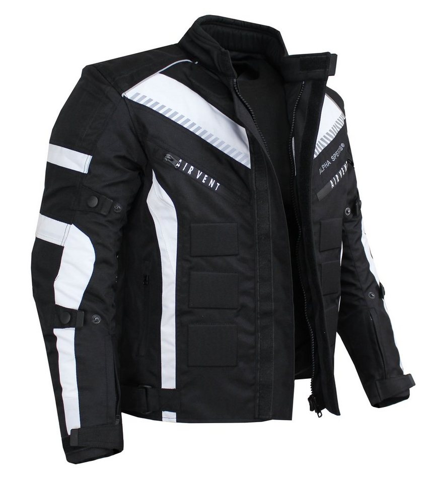 Alpha Speeds Motorradjacke Herren Motorrad Biker Textil Jacke Wasserdicht Jacke mit Protektoren BelüftungssystemeInnenjacke ist trennbar: All Season, SLIM Weiß