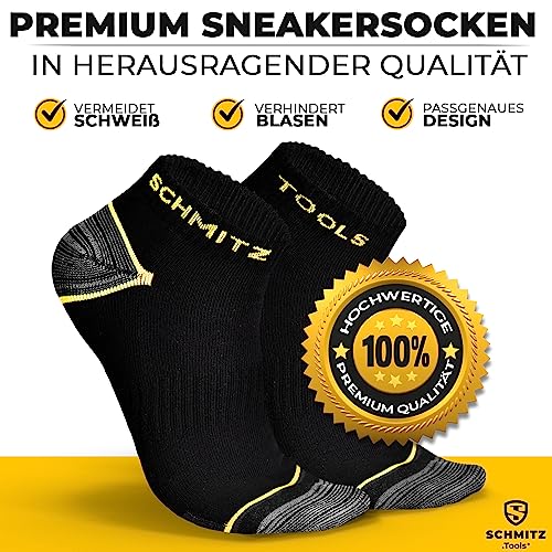Die Sneaker-Socken von Schmitz Tools sind strapazierfähig und komfortabel zu tragen. Sie verursachen keine Abdrücke und bieten Schutz vor Blasen und Druckstellen. Mit einem Preis von 25 Euro für fünf Paar erzielen die Socken ein gutes bis sehr gutes Preis-Leistungs-Verhältnis. - zusammengefasst durch die Testsieger.de-Redaktion