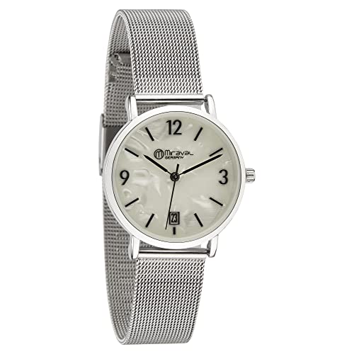 Miraval Moderne Design Damenarmbanduhr mit Datumsanzeige 33mm Edelstahlarmband Extra DünnJapanisches Quarzuhrwerk