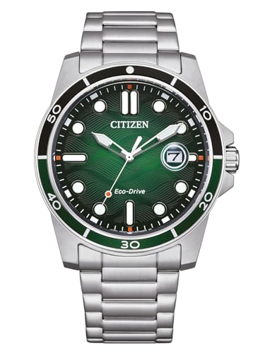 Citizen Herrenuhr Eco-Drive Solar mit Edelstahl Gliederband Silberfarben/Grün AW1811-82X