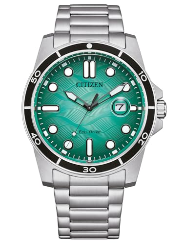 Citizen Herrenuhr Eco-Drive Solar mit Edelstahl Gliederband Silberfarben/Türkis AW1816-89L