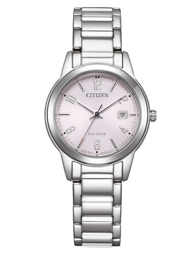 • Die Citizen Damenuhr Eco-Drive Solar mit Edelstahl Gliederband Silberfarben/Rosa FE1241-71Z ist eine elegante Uhr für Frauen