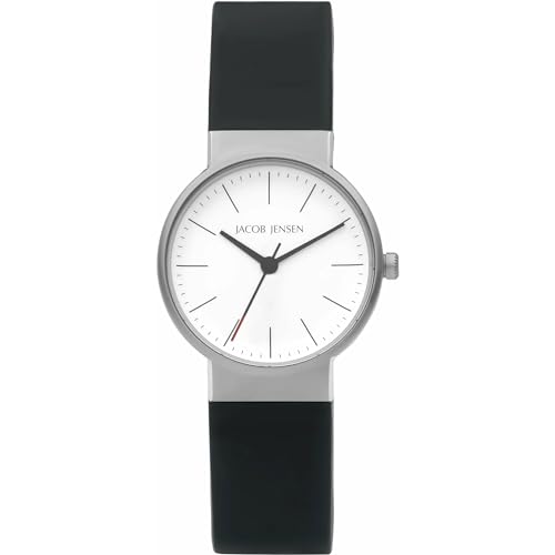 Jacob Jensen Damenuhr Titan Quarz Schwarz/Rot 193Silikonarmband und Synthetischer-Saphir Uhrglas