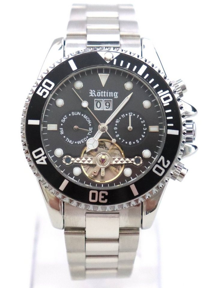Rötting Design Herrenuhr Automatikuhrschwarze Lünette, Lumineszierende Skalierung, Handgelenkumfang wählbar