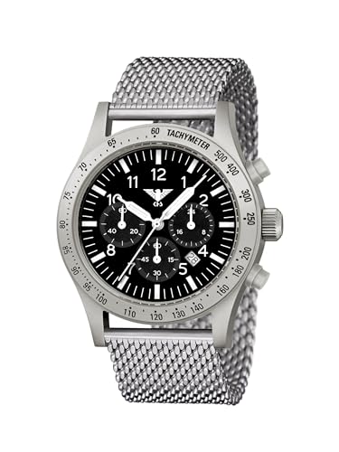 • Das KHS Platoon Steel Solar Chronograph KHS.PLASSC.MS bietet ein Gehäuse aus strapazierfähigem Edelstahl und extra gehärtetes Mineralglas