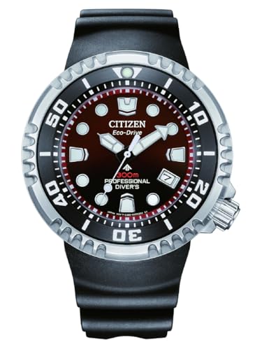 CITIZEN BN1024-01Z Herrenuhr Eco-Drive Solar Promaster mit schwarzem KunststoffbandWeinrotes Zifferblatt und 30 ATM Wasserschutz