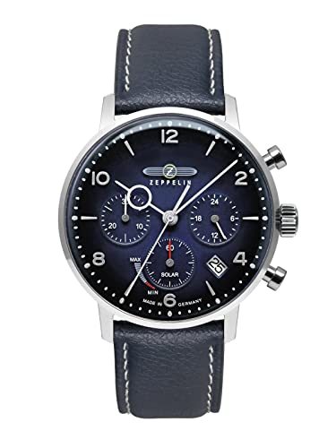 • Diese Herrenuhr von Zeppelin ist ein Solar Chronograph und trägt den Namen LZ129 Hindenburg Blau