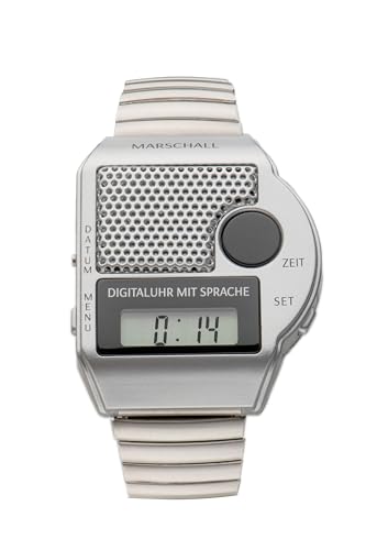 • Die Marschall Deutsch sprechende Armbanduhr ist eine digitale Uhr, die speziell für blinde, sehbehinderte und ältere Menschen entwickelt wurde