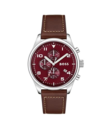 • Die BOSS Chronograph Quarz Uhr für Herren mit Braunes Lederarmband